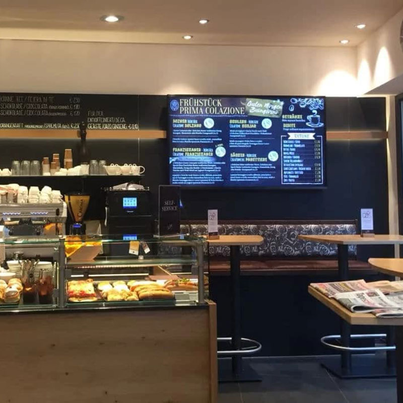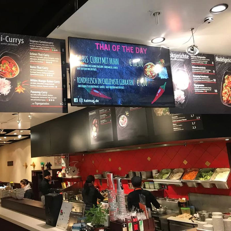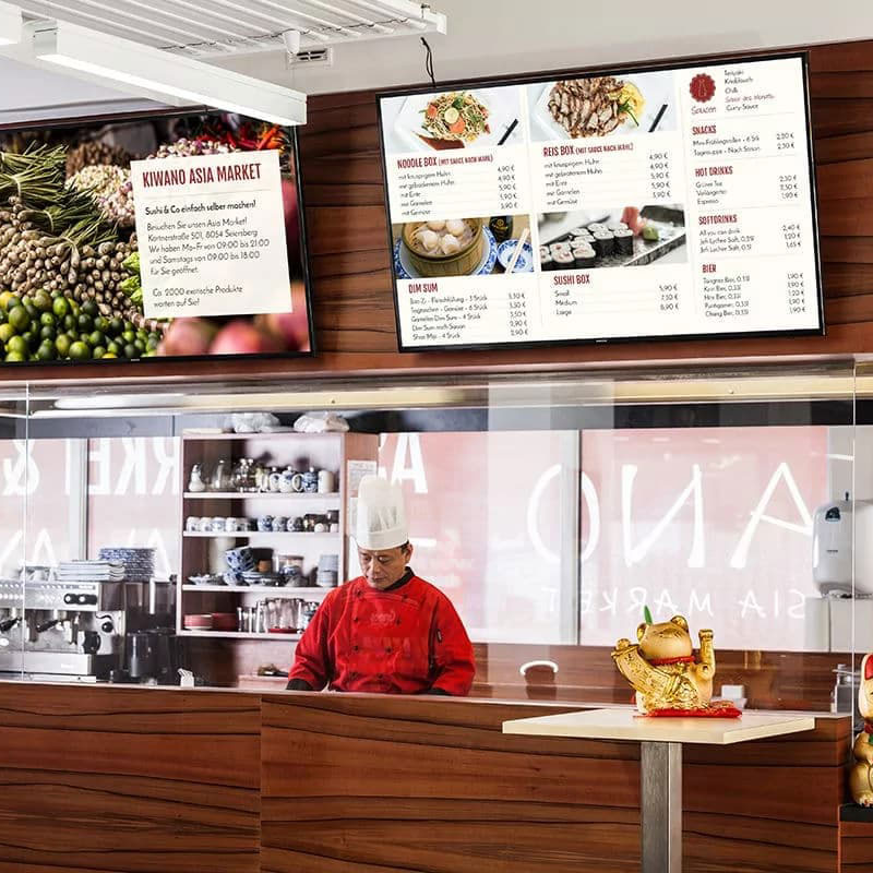 Weitere Informationen zu Digital Signage wie Fenster-, Wand- und Standdisplays, Kundenstopper und vieles mehr für Indoor als auch Outdoor – direkt bei Ihnen vor Ort!