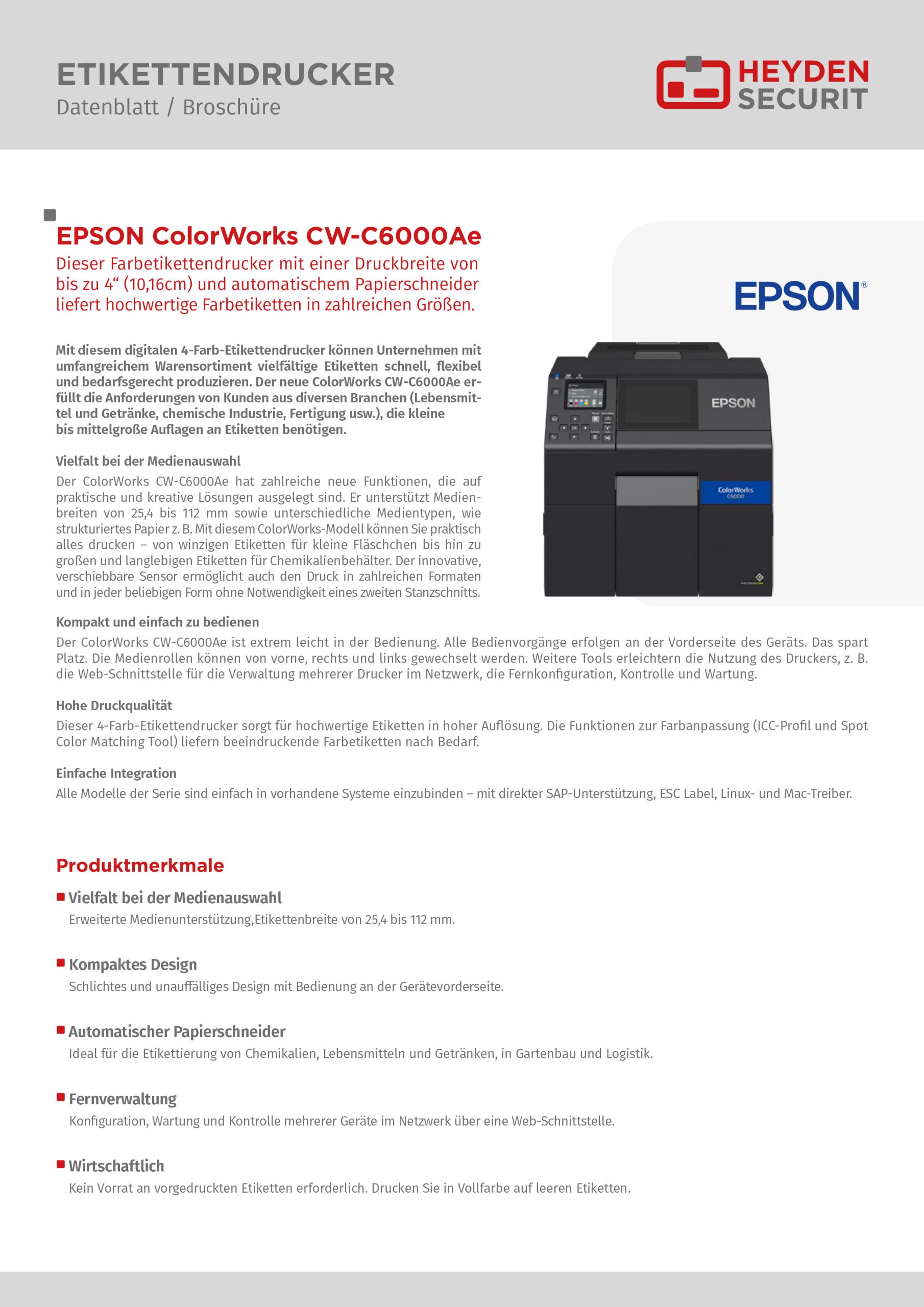 Heyden-Securit bietet Full-Service & Support rund um Ihren Epson ColoroWorks C6000 Etikettendrucker