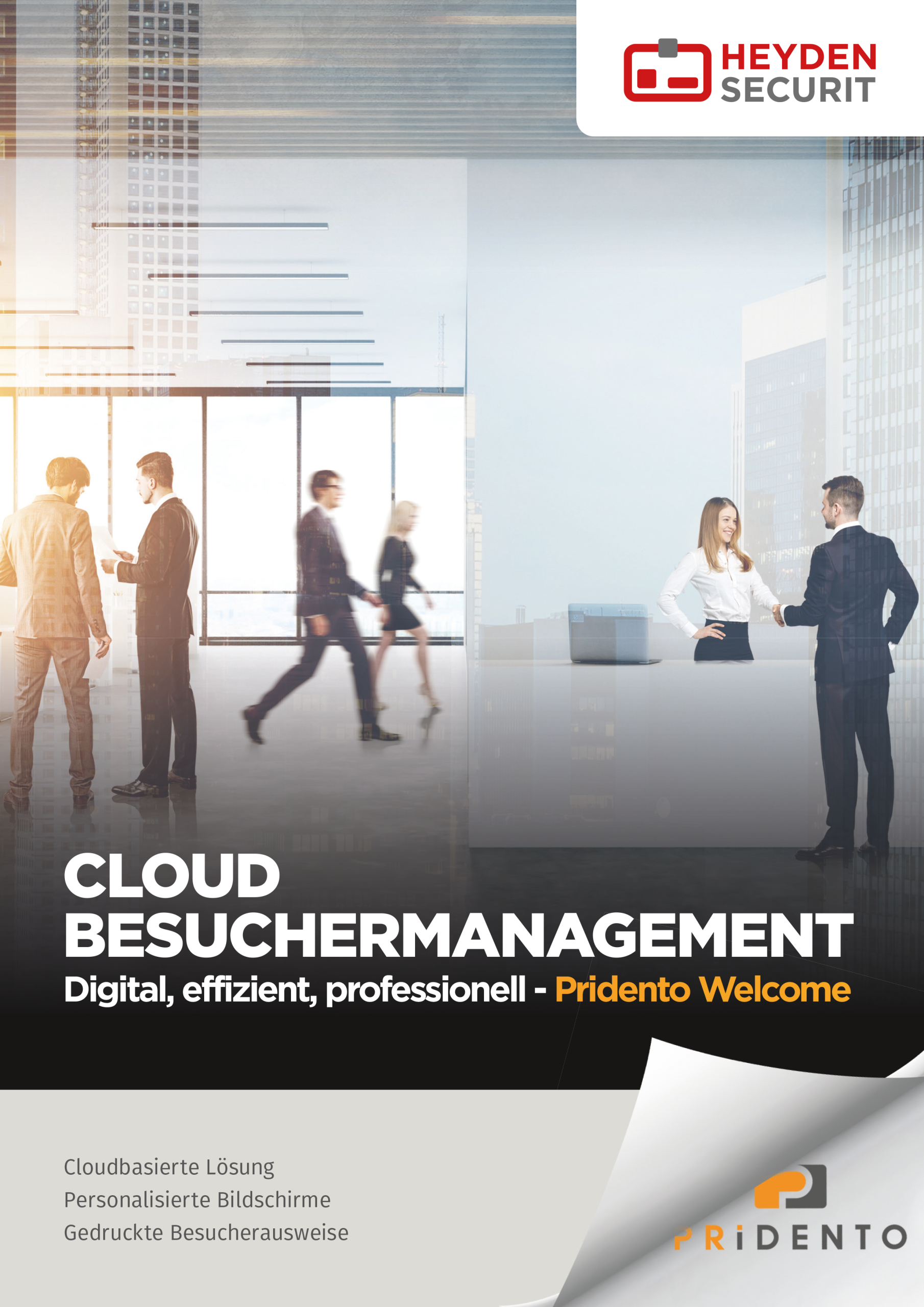 Mit Pridento Welcome begrüßen Sie Ihre Besucher professionell und beeindrucken mit einem durch digitale Abläufe erstklassig modernisierten Empfang, zum Beispiel mit personalisierten Bildschirmen und gedruckten Besucherausweisen.