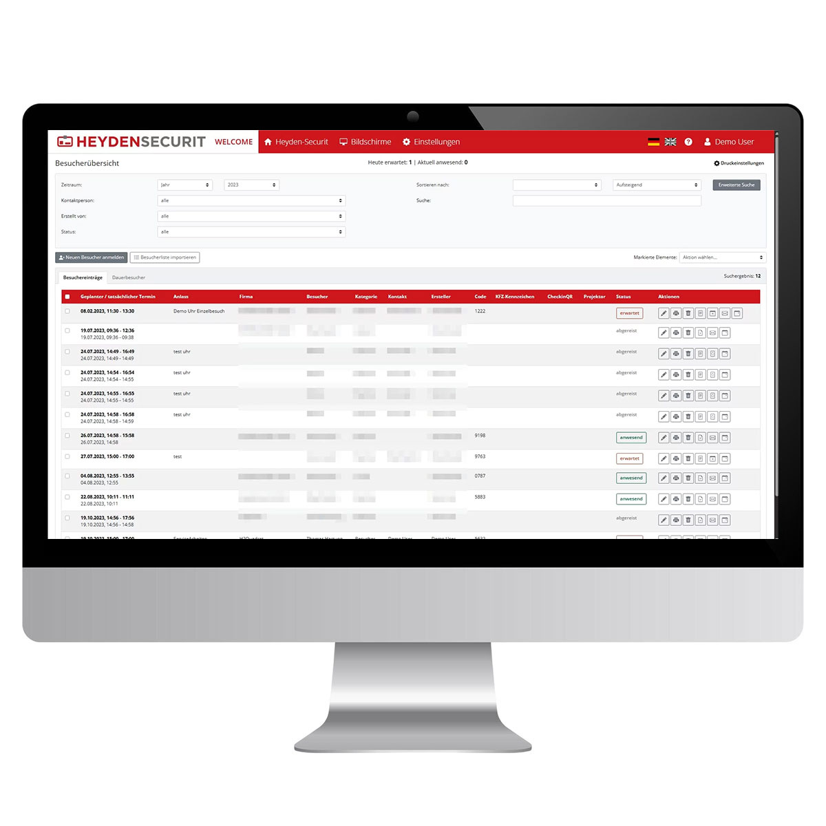 Die durchdachte Software bietet alles, was Sie sich für Ihr Besuchermanagement wünschen: automatisch generierte Termineinladungen, individuelle WLAN-Codes für die geplante Aufenthaltsdauer, Outlook-Integration, Zuordnung von Meetingräumen und Catering, digitales Einchecken, digitale Signatur von Sicherheitsunterweisungen, Besucherauswertungen, automatische Benachrichtigung des Einladenden über das Eintreffen seines Besuchers und vieles mehr!