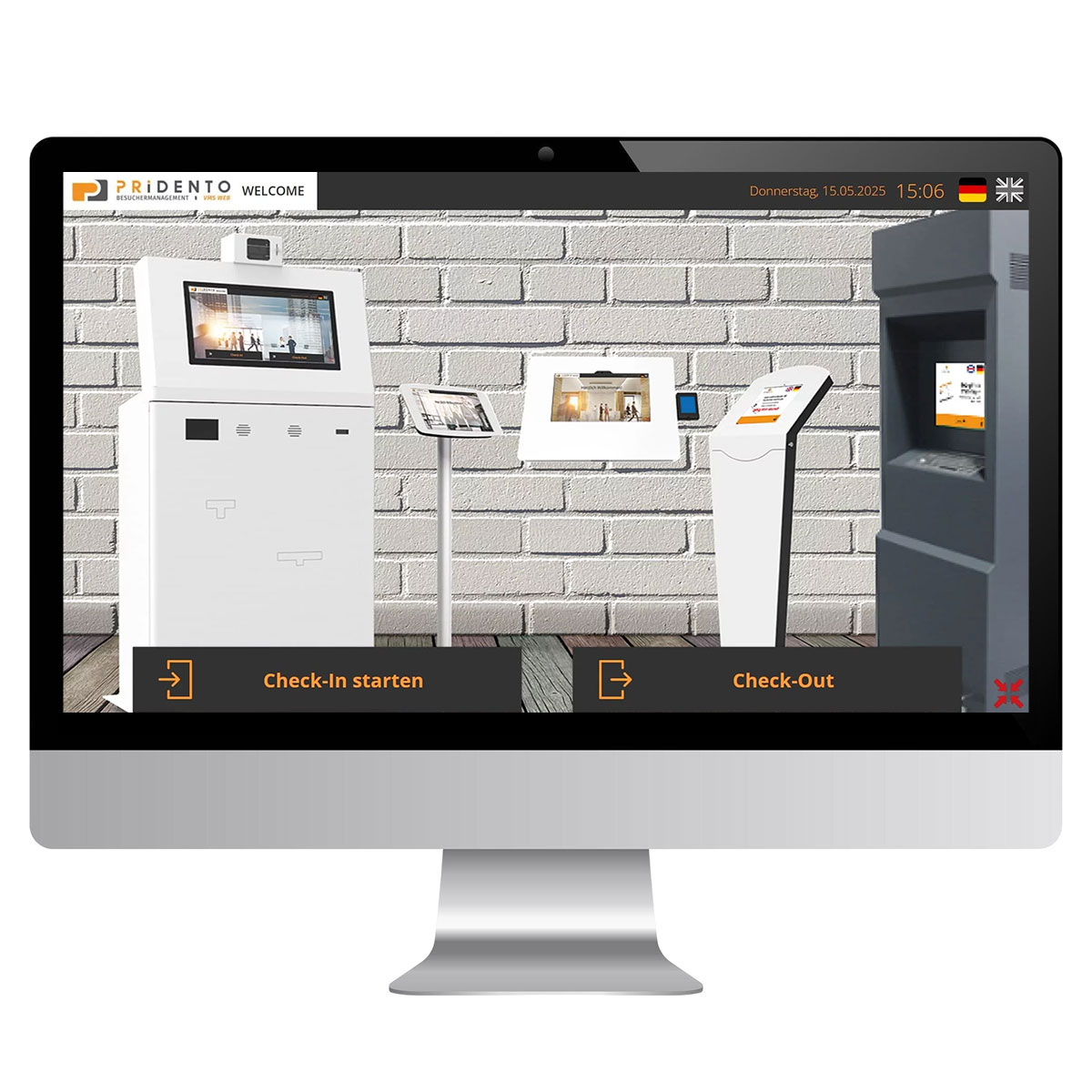 Mit Pridento Welcome haben Sie die Möglichkeit, Besuchsvorgänge in Ihrem Unternehmen zu managen. Sie können Besucher anlegen und per E-Mail einladen, diese auf Willkommensbildschirmen persönlich mit Namen und Firmenlogo Begrüßen, für die Besucher Ausweise ausdrucken und die Besucher Dokumente wie z.B. Sicherheitsunterweisungen unterschreiben lassen. Trifft der Besucher dann am Empfang ein, wird der Besucher vom Empfangspersonal eingecheckt, ein Besucherausweis ausgedruckt und der Besuchte per E-Mail über das Eintreffen benachrichtigt. Über die Funktion Self-Check-In können sich die Besucher auch auf Tablets selbstständig einchecken und auch Dokumente wie Sicherheitsrichtlinien oder Geheimhaltungsvereinbarungen elektronisch unterzeichnen. Die Besucher können sich auch komplett selbständig registrieren.