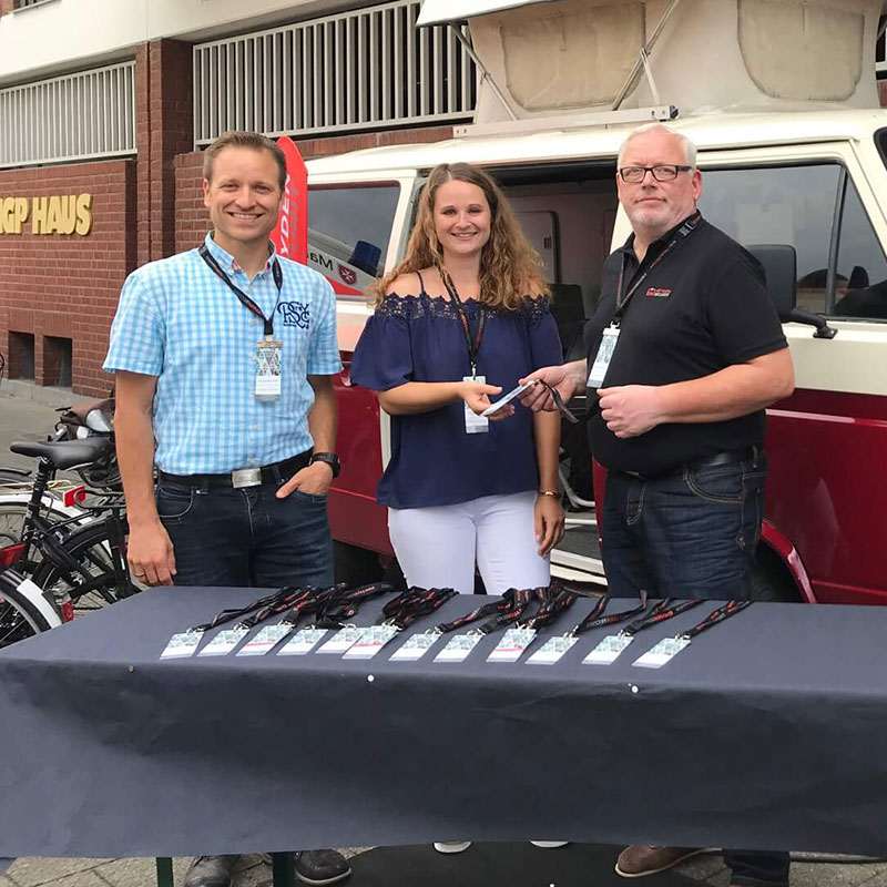 Dabei werden auch immer wieder neue Veranstaltungskonzepte entwickelt, die die verschiedenen Unternehmen und Unternehmer zusammenbringen sollen – wie das Event „Standort der guten Arbeitgeber: business:lounge & friends“, welches seit bereits sechs Jahren durchgeführt wird. In diesem Jahr durfte Heyden-Securit GmbH erneut bei der Akkreditierung behilflich sein. Das Design der Teilnehmerausweise wurde von der EWG selbst kreiert, die dafür benötigten Sonderformatkarten druckte Heyden-Securit im hochwertigen Offsetdruck vor. Produziert wurden die Ausweise direkt aus der Software CardExchange Producer mit dem Magicard Rio Pro 360 XTD für Plastikkarten mit bis zu 140mm Länge. Auch die Lanyards mit Sicherheitsverschluss wurden über Heyden zur Verfügung gestellt.