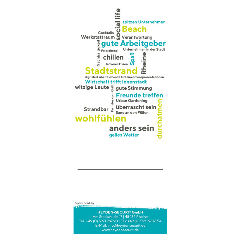 Durch das mobile Ausweissystem konnten auch Nachzügler und Ausweis-Vergesser problemlos mit Namensschildern versorgt werden. Die Veranstaltung „business: lounge & friends“ bringt Unternehmen aus Rheine und der Region sowie die Mitarbeiter der Initiative „Rheine – Standort der guten Arbeitgeber“ zusammen. Ein Grund bei Loungestimmung, außergewöhnlichem Ambiente, leckerem Essen und erfrischenden Getränken den lauen Sommerabend zu genießen.