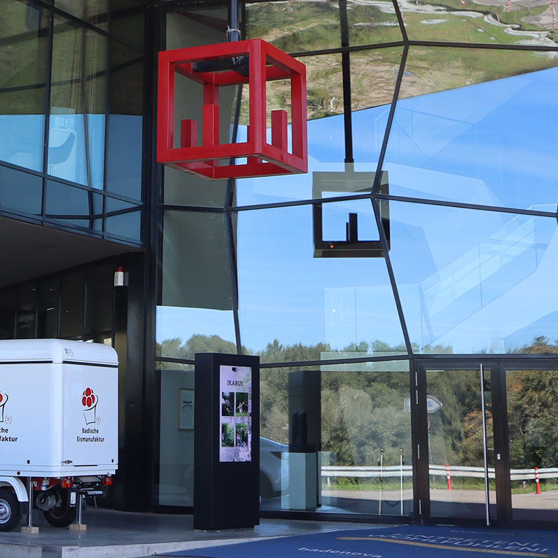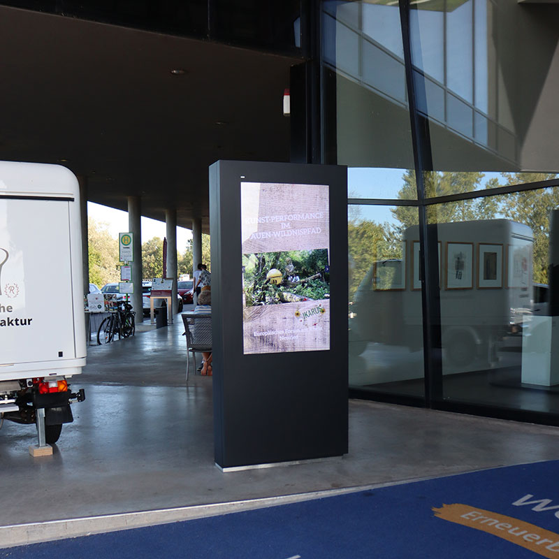 Nun werden die Angebote des Europäischen Forums automatisiert und zeitgesteuert vor dem Eingangsbereich auf einer outdoorfähigen Stele präsentiert.